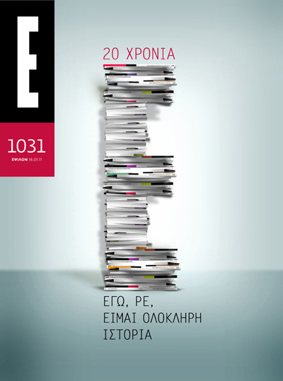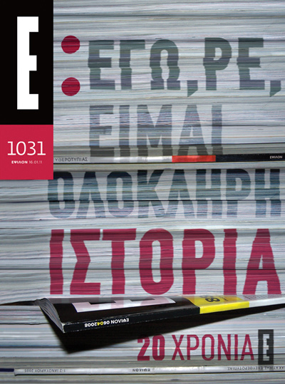 The brief was to design an anniversary cover for the twenty years presence of the magazine and required the incorporation of the phrase "Εγώ, ρε, είμαι ολόκληρη ιστορία" (I am the whole history).